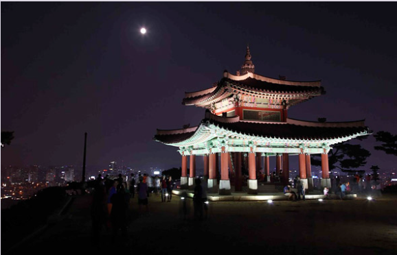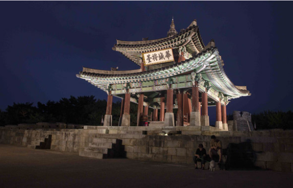 팔달산 정상의 서장대는 세계문화유산인 수원화성의 여러 건축물 중에서도 단연 돋보이는 누각이다. 수원화성을 축성한 정조대왕은 서장대를 다섯 번이나 오르며 ‘화성장대’라는 편액을 직접 썼다. 서장대 인근 전체가 달맞이 포인트이지만 바로 뒤편 서노대에서는 둥실 떠오른 보름달, 은은한 조명이 감도는 서장대, 반짝이는 수원의 야경 모두를 한눈에 담을 수 있다.