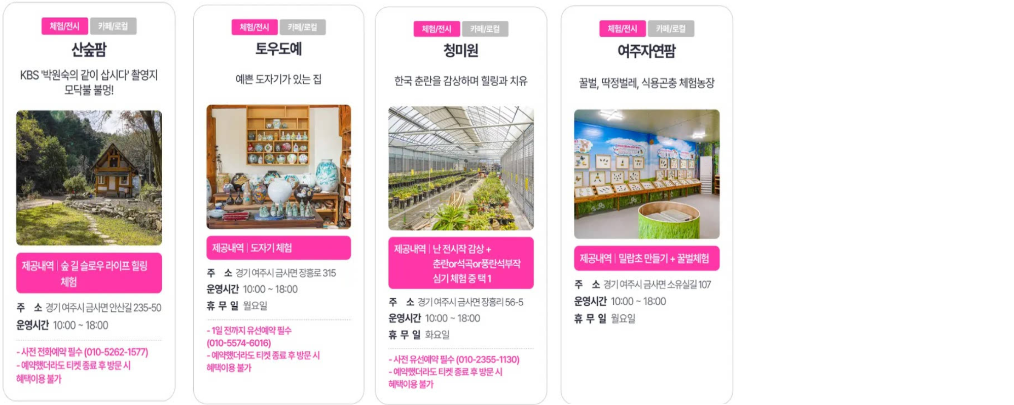 경기투어패스 권역별 관광지 안내 마지막편. 남부권입니다. 남부지역은 동부, 서부, 북부보다 방문할 수 있는 곳이 더 많네요. 지역별로 일정을 잘 세워서 해당 관광지를 모두 섭렵해 보시면 좋겠습니다.