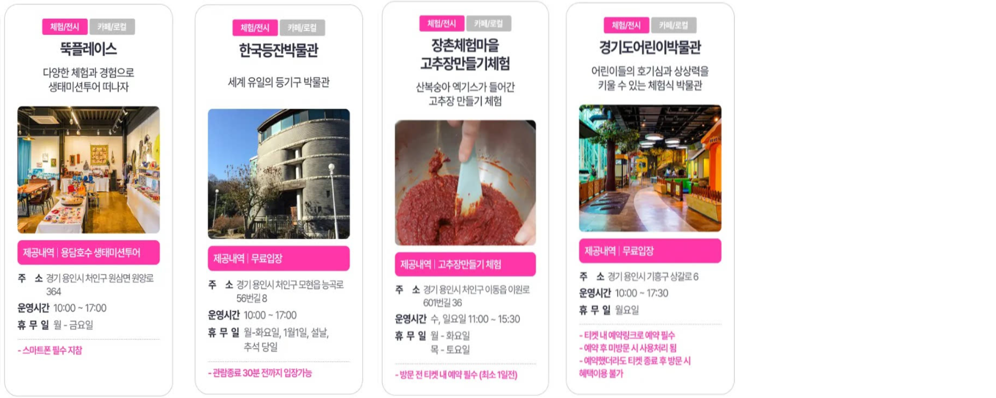 이동거리를 최소하면 하루에 많은 장소를 방문할 수 있습니다. 알뜰하게 경기도 여행하세요!!!