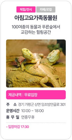 동부권은 주로 가평과 양평지역에 이용가능한 관광지가 몰려있습니다.