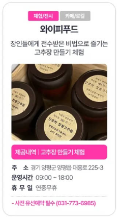 강상면, 강하면 경기투어패스 이용 가능한 곳
