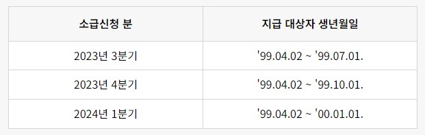 * 2023년 3분기부터 2024년 1분기 지급받기 못한 경우 해당 분기 체크하면 소급적용 가능