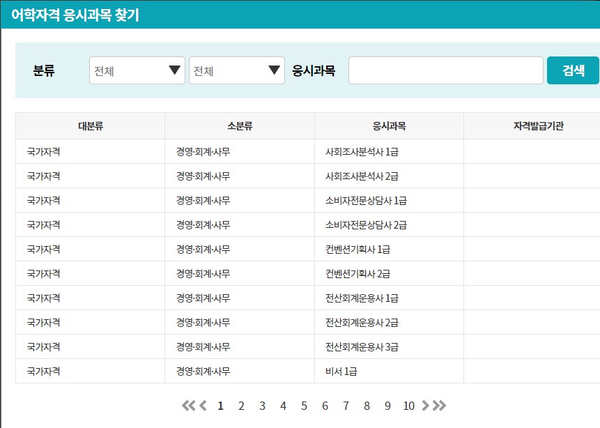 어학과 자격관련 909종에 대해 신청가능합니다.